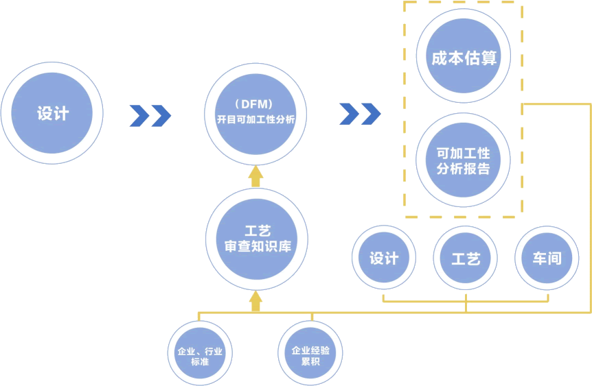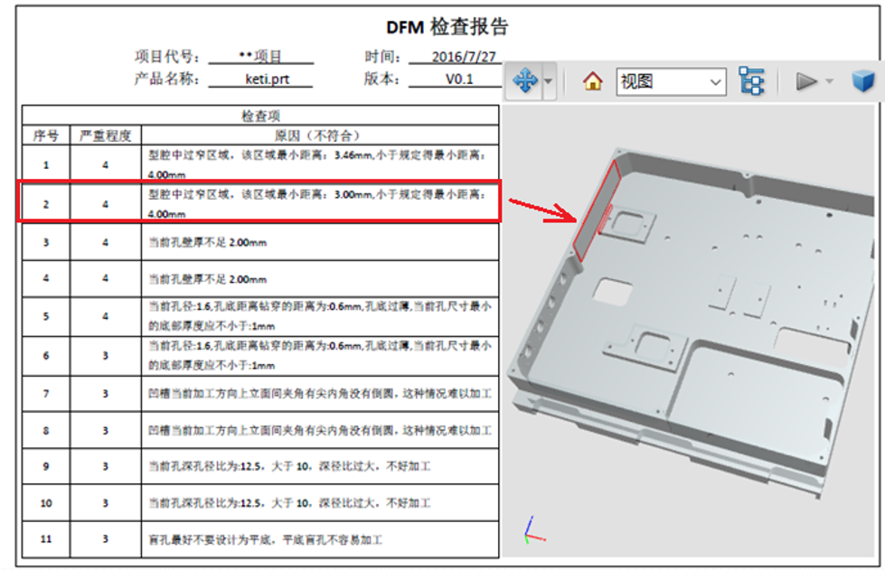 为解决制造、装配、成本、可靠性等问题,便于上游可制造性验证,3DDFM可以帮助标识出设计中的难以制造、制造成本昂贵甚至无法制造的设计,自动完成繁琐设计的工艺性审查,获取和重用已有知识,为企业持续发展助力。