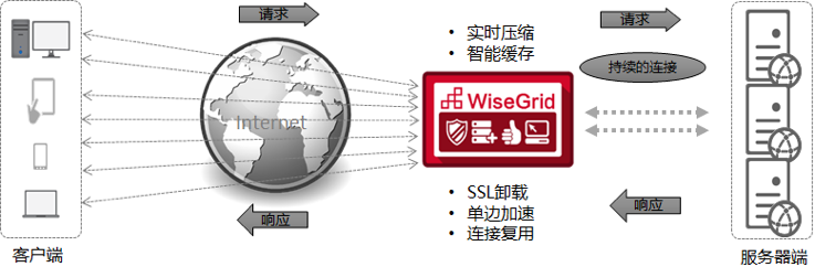 WiseGrid 慧敏系列应用交付网关采用基于Http对象的内容缓存功能,利用策略规则将允许缓存的Http对象存放在系统内存空间或硬盘空间,从而提高客户访问速度。