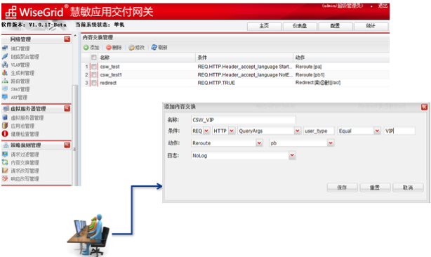 慧敏应用交付网关提供基于策略脚本的应用行为和内容控制机制,其中基于请求的内容过滤功能,主要用于用户自定义非法请求特征,并予以告警和阻断。